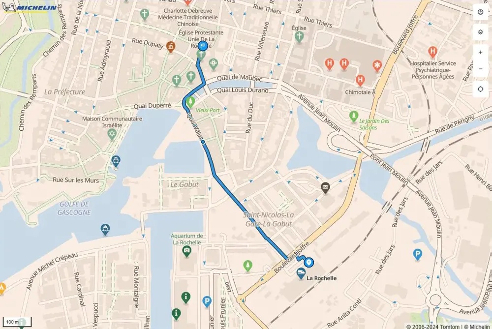Autoroute A10, sortie 33 La Rochelle Centre. Suivre les indications vers le centre-ville. Le gîte se trouve à proximité du Vieux Port, dans le cœur historique de la ville.
